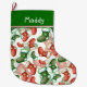 Cute pattern of tiny Christmas stockings in red and green is a funny, fun and festive design on this Christmas stocking. Personalise the name for a custom made stocking.