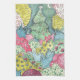 This whimsical, original painting features colourful bushes and winter foliage surrounding a decorated Christmas tree with a white dove perched on top. A fun, colourful towel for your holiday kitchen! Pinks, greens, and blues, whimsical line work, and interesting perspective make this festive towel stand out.