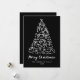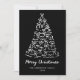 Send modern holiday greetings with this non-photo Christmas card featuring a whimsical white hand-drawn tree accented with playful bows on a bold black background. “Merry Christmas” is displayed in elegant script, with personalisation available for your family name and year. The back provides space for your holiday message, making this trendy black and white Christmas card a stylish way to celebrate the season.