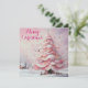 Whimsical Christmas Tree Pink Personalised Holiday Card