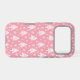 This cute pink and white Christmas iPhone case, features a whimsical Christmas tree and snowflake pattern.
