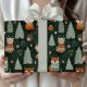 Whimsical Christmas Tree with Red Fox Dark Green Wrapping Paper