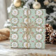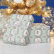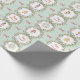Add a touch of magic to your holiday gifts with this whimsical Christmas wrapping paper. Each wreath holds a charming Christmas element — a snowman, rocking horse, or nutcracker — surrounded by holly, berries, and festive red bows. The mint background gives a fresh, playful twist to a vintage-inspired holiday design.