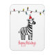 New modern, non-traditional holiday design for 2020 features a whimsical zebra illustration with red Santa hat, a string of holiday lights and customizable "Happy Holidays" text