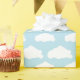 My original digital art design of whimsical white clouds in a repeating pattern on a blue background.