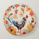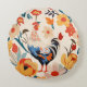 Whimsical Colourful Chicken Floral Background Round Cushion
