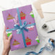 Red, Purple, Blue whimsical cute cupcake gift wrap for birthdays, baby showers or weddings.