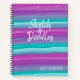 A beautiful girly design with purple, aqua, turquoise watercolor stripes with modern calligraphy, sketch and doodle book.