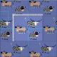 Fun farm inspired fabric, with a whimsical cow pattern, on a dusty blue background. Great for all your sewing and craft needs.