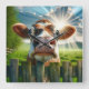 Whimsical Cow Peering Over Fence Square Wall Clock