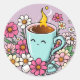 Whimsical Cup of Warm Coffee and Flowers Classic Round Sticker