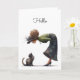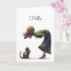 Whimsical Cute Cat and Lady Hello Greeting Card