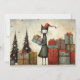 Whimsical Cute Cat with Christmas Gifts and Tree Holiday Card