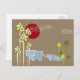 Whimsical Cute Elephant Family In Forest Trees Sun Postcard