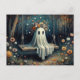 Capture the enchanting blend of whimsy and spookiness with this beautifully illustrated "Happy Halloween" postcard featuring a cute, Victorian-inspired ghostly figure on a swing, adorned with a delicate floral crown. Rendered in a whimsical, oil painting style, this artwork brings a charmingly eerie vibe to life with its rich, textured brushstrokes and an old effect that adds a nostalgic touch. Set against a mystical, dark forest backdrop, the vibrant flowers and soft hues contrast with the ghost's ethereal presence, creating a dreamy, otherworldly atmosphere that will intrigue and delight. Ideal for sending Halloween greetings or as a year-round keepsake, this postcard is a perfect choice for those who love a mix of Victorian elegance, fantasy, nature, and a touch of the supernatural. Whether you’re sharing festive wishes or adding to your art collection, this "Happy Halloween" postcard will stand out with its hauntingly beautiful and vintage-inspired aesthetic.