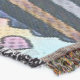 A quality printed throw has its advantages. This is a much finer weave throw than its loopier cousins, and though lighter, it is worth the investment for custom room accessorizing. The back is much prettier than the typical brown, and the fringe on the long sides very vivid, the selvage nicely done. Before photographing, I washed the throw in cold water, delicate, with a thicker woven throw the same size. On tumble dry low, this throw was dry in half the time as the other. This is a very practical quality if you use throws for furniture covers or to wrap up in frequently. The sleekness of the fabric makes it a great layer for accenting or protecting without the feeling of sitting on too much stuff. Perfect for napping or when you feel a light chill coming on. The color printing is beautiful and on this fabric, matched the design and color of my Photoshop image. This is an advantage for blending room fabrics and colors. The fringe on the short sides prints the colors from the design image and therefore varies from the side fringe. I streaked a white fractal line through the plaid pattern to give the illusion of weaving. This printed as crisp as an illusory thread, and put some white in the short side fringe, showing another advantage of print vs loomed- for artistic purposes, line lines, detail, and color integrity can be planned and preserved. My loomed throws have color limitations and more of a needlepoint texture. Print throws reproduce an exact image. The throw felt a little stiff straight out of the package, but this went away in the first delicate wash. Of course I searched the wash water for ink or bleeding and there was none.