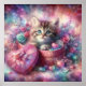 Step into a world of wonder with our Whisker Wonderland poster print, where a precious tabby kitten peeks out from a heart-shaped box, amidst a symphony of vibrant flowers and shimmering sparkles. Awash in shades of dreamy purples and pinks, this charming scene is a delightful addition to any space. Whether you're a cat lover, a whimsical soul, or simply seeking a touch of joy, this print captures the essence of innocence and enchantment. Transform your surroundings into a sanctuary of warmth and delight, and let this endearing feline companion whisk you away to a realm of pure bliss.