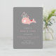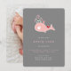 Whimsical Cute Pink Whale Monogram Baby Girl Birth Announcement
