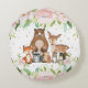 Whimsical Cute Woodland Animals Pink Blush Floral Round Cushion
