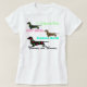 Colourful whimsical dachshunds, with painted flowers are surrounded by cute wiener dog phrases. Cute shirt for any dachshund lover and makes a great gift too.