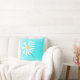 whimsical daisy design turquoise and white cushion