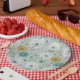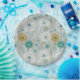 Dandelion Pattern Paper Plate - A charming seamless pattern featuring whimsical, stylised flowers and intricate dandelion seed heads, paired with abstract botanical details. The muted palette of blues, teals, yellow, green, and white on a soft light grey-blue background creates a soothing, harmonious look.
