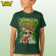 Adorable deer, Jungle Welcome, Green T-shirt. Bring a touch of woodland wild adventure to your kid's wardrobe with this charming shirt featuring an unique wildlife fawn cartoon animal graphic! A cute whimsical doe stands proudly in nature in front of a massive ancient stone, surrounded by lush, overflowing vegetation in a vibrant forest setting. Available in various colours and sizes —grab yours today and let your child roar with joy! 🦌