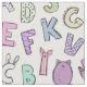 Alphabet letters - whimsical multicolored roman alphabet letters. Critter letters with ears, eyes and tails and letters with random doodles, markings, grunge, spots and lines. Letters in shades of pink, purple, green, blue, grey and brown. Set on whitealphabet+whimsical+doodle+multicolored,critter+animal+letter+ears+tails,pink+purple+green+blue+grey,grunge+spots+lines+drawing+scribble,fun+young+child+youth+for,abc's+random+letters+pattern+print,for+kids+girl,cute