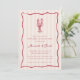 Our summery lobster bake rehearsal dinner invitation is perfect for your seaside celebration! Whimsical coastal design features summery red lettering and illustrations on a pale peach cabana stripe background. A hand drawn lobster doodle sits atop your event details, framed by a wavy scallop border. Includes space for both your wedding ceremony rehearsal and subsequent celebration.