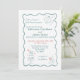 A lighthearted whimsical doodle styled wedding invitation. Basic color is blue, the monogram of the bride and groom is also included on the bottle label element. Cake, booze and bad dance moves quote is also included. Please personalize all text.