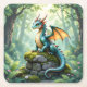 Whimsical Dragon on Ancient Stone Square Paper Coaster