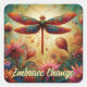 Whimsical Dragonfly Floral Abstract Art Teal Pink Square Sticker