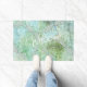 Whimsical and beautiful dragonflies welcome door mat. Mix of teal, blues and greens and grey with dragonfly pattern. Large welcome and customisable name. Jenn's Emporium.