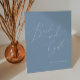 Introducing our whimsical dusty blue baby shower books and gifts pedestal sign, perfect for your simple modern boho spring or winter celebration! This sign has a boho-chic vibe with elegant calligraphy and a minimalist white-on-blue design, making it ideal for boys. Plus, it's editable, so you can add your own classy, whimsical touch to create a truly beautiful and delicate design. Please feel free to reach out with any questions regarding the product's design; we are happy to help!