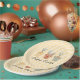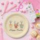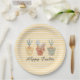 Make your Easter gatherings even more festive with these charming paper plates featuring a whimsical design of bunnies and carrots nestled in colourful polka-dot and chequered flower pots. The warm brown background and playful illustrations bring a cosy and cheerful touch to your holiday table, perfect for parties, picnics, and family celebrations.