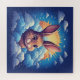 A friendly Easter bunny pops from fluffy clouds beneath a radiant sun, set against a starry blue sky. This magical, whimsical illustration evokes wonder, joy, and childlike imagination.