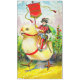 This delightful art print captures the whimsy of a vintage Easter greeting card, featuring a playful scene of a child riding a giant chick, holding a festive "Easter Greetings" banner. The vibrant colours and nostalgic style make it perfect for adding cheer and charm to your holiday decor. Ideal for Easter celebrations or as a unique gift, this print blends retro charm with joyful holiday spirit, bringing a touch of whimsy to any space.