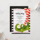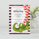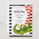 Elf legs in striped tights and green boots on black and white stripes and gold dots, these Christmas party invitation are fun for any holiday occasion. MATCHING items in our store.