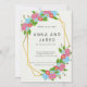 Introducing our stunning wedding invitation, featuring an elegant old geometric frame beautifully adorned with charming pink and blue flowers. The intricate design of the frame is sure to impress your guests with its timeless beauty and sophistication, while the delicate flowers add a touch of whimsy and romance to the overall look.