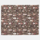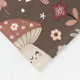 A cottage core folk art style blanket with cute little fairy gnomes, mushrooms, flowers in mauve, brown and burgundy. A sweet theme for a girl's room.