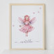 Decorate your little one's bedroom with this cute watercolor poster featuring the whimsical illustration of a little fairy holding beautiful flowers and surrounded by pink butterflies. Customise it with your child's name in elegant script typography.