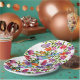 Whimsical fairy-like flowers and butterflies surrounding a blue bird bath. Feminine Airy and delicate blues, pinks, purples, yellows, greens, all your favourite colours for your favourite gatherings! Custom personalised monogram party paper plates for all occasions. Watercolor design image originates from the designers collection. Enjoy coordinating your party ensemble to express your own Theme. If you want something more particular please contact me at sue.chorney@shaw.ca.