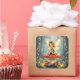 A pretty little fairy sitting atop a whimsical mushroom covered in Christmas lights and surrounded by gifts. A sweet whimsical illustration that add a cottage core touch to your envelopes.