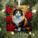 Cute Christmas cat themed ornament with a beautiful fluffy calico cat and red poinsettias with a gold background. On the back you can add your own custom message.