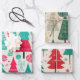 Whimsical Festive Christmas Tree Pattern Wrapping Paper Sheet