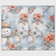 Whimsical Festive Floral Snowman Decoupage Wrapping Paper