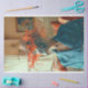 Bernice's orange hat is a statement piece, adorned with feathers and mesh, exuding a sense of grandeur. The blue shirt provides a relaxed contrast to the hat’s extravagance, adding to Baxter’s laid-back yet stylish demeanour. Set against a backdrop of classical artwork and warm tones, Baxter’s attire stands out, reflecting his unique personality. Bernice's attire and style blend the surreal with the fashionable, creating a whimsical and eye-catching appearance. Decoupage paper for chairs, furniture, canvas and poster art.