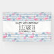 Birthday banner with a pattern with a fun summery vibe. Pink flamingos and pineapples set on a light blue striped pattern with leaves and hearts all around.