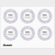 Business stickers with a pattern with a fun summery vibe. Pink flamingos and pineapples set on a light blue striped pattern with leaves and hearts all around.