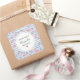 Baking stickers with a pattern with a fun summery vibe. Pink flamingos and pineapples set on a light blue striped pattern with leaves and hearts all around.